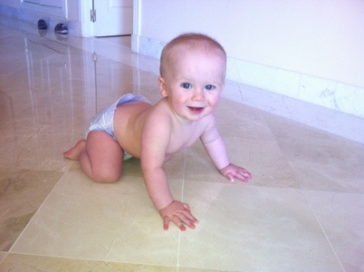Plutselig kryper han i stedet for å bare åle seg fremover…. marmorgulv er kaldt…