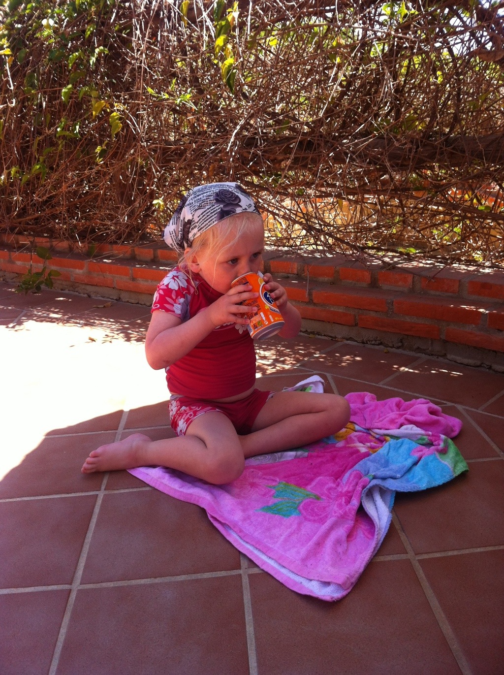 Intens drikkepause! Godt å slappe av litt i skyggen.